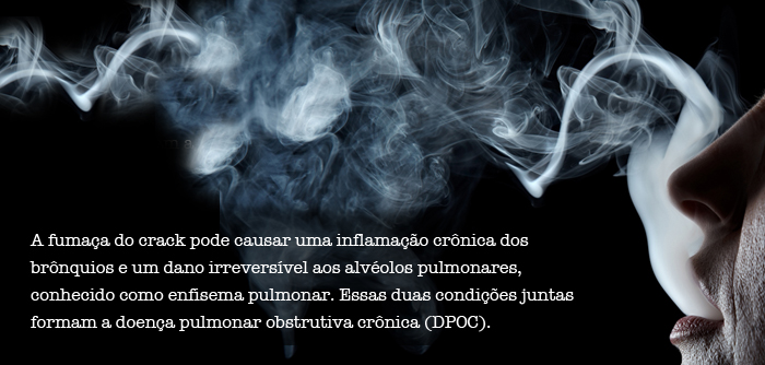 Atualmente, a medicina tem utilizado o termo “pulmão do crack” para definir uma síndrome pulmonar aguda que acontece logo após a inalação da droga. Embora o mecanismo ainda não esteja muito bem estabelecido, há evidências de que o crack causa uma contração dos vasos sanguíneos dos pulmões que leva à falta de sangue no tecido pulmonar (isquemia).